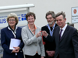Schlüsselübergabe beim Alten- und Pflegeheim Haus Phöbe in Warburg (März 2009) Nun ist es öffentlich vollzogen: Mit der offiziellen Schlüsselübergabe wurde am 23. März 2009 der Trägerwechsel vor mehr als 50 Gästen besiegelt: Das Alten- und Pflegeheim Haus Phöbe in Warburg-Rimbeck wechselte von der Evangelischen Kirchengemeinde Scherfede-Rimbeck in die Trägerschaft der Evangelischen Frauenhilfe in Westfalen e.V. Die Evangelische Kirchengemeinde Scherfede-Rimbeck war seit den 1950er Jahren für das heutige 75-Betten-Haus verantwortlich. Dankesworte an den bisherigen Träger und Segensworte für die Evangelische Frauenhilfe in Westfalen e.V. sprachen unter anderem Superintendentin Anke Schröder vom Kirchenkreis Paderborn, Bürgermeister Michael Stickeln von der Stadt Warburg, Thomas Berens als Geschäftsführer des Seniorenzentrums St. Johannes Warburg GmbH, Barbara Matina als Leiterin des Fachseminars für Altenpflege des St. Johannesstiftes Paderborn, Margaretha Wolf als Vorsitzende der Hospizbewegung Warburg e.V., Pfarrer Claus-Jürgen Reihs von der Nachbargemeinde Warburg-Harlinghausen und Marlen Bieling als Gemeindereferentin im Pastoralverbund Egge-Börde-Diemeltal. Pfarrer Karl-Ludwig Wendorff von der Evangelischen Kirchengemeinde Scherfede-Rimbeck übergab symbolisch einen überdimensionalen roten Schlüssel an Barbara Mengel, Vorstandsmitglied der Evangelischen Frauenhilfe in Westfalen. |