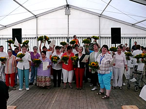 Beschäftigtenfest der WfbM Wengern (August 2009) 31 Jubilarinnen konnten am 21. August 2009 ihr 20-jähriges Dienstjubiläum begehen. Die Werkstatt für behinderte Menschen (WfbM) des Frauenheims Wengern besteht 2009 seit 20 Jahren und einige der dort Beschäftigten sind von Anfang an dabei. Nach 20 Jahren ab Beschäftigungsbeginn in der Werkstatt haben die Jubilarinnen sich einen Anspruch auf Rente wegen voller Erwerbsminderung erworben. Persönliche Ehrung, gutes Essen und gute Musik ließen mehr als 150 Gäste von 17 Uhr bis 21.30 Uhr auf dem Gelände des Frauenheims feiern. |