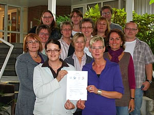 12 examinierte Pflegekräfte absolvierten einjährigen Palliative Care Kurs erfolgreich (September 2010) ![]() Nach 160 Unterrichtsstunden in vier Kurswochen halten 12 examinierte Pflegekräfte glücklich ihr Zertifikat zum Palliative Care Kurs, den die Evangelische Frauenhilfe in Westfalen e.V. durchführte, in den Händen. Fast ein Jahr haben sie sich berufsbegleitend mit der bestmöglichen Lebensqualität für Patientinnen und Patienten in deren letzten Lebensphase beschäftigt. Grundkenntnisse der Tumorschmerztherapie und Symptomkontrolle, psychologische Aspekte der Krankheitsbewältigung, Kommunikation mit dem Erkrankten und den Angehörigen, spezielle Möglichkeiten der Grund- und Behandlungspflege, Umgang mit Sterben, Tod und Trauer sowie religiöse, kulturelle und ethische Aspekte in der Sterbebegleitung waren Themenschwerpunkte. Die Teilnehmenden waren sehr zufrieden mit dem Verlauf der Tagung. Die vielfältigen Informationen auch im Hinblick auf die Anwendbarkeit im Pflegealltag, der kollegiale Austausch und die praxisnahe Ausrichtung der Tagung wurden gelobt. Der Palliative Care-Kurs wurde sowohl als berufliche Qualifizierung als Gewinn beschrieben, als auch bereichernd für das eigene Leben. |