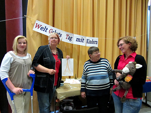 Die Evangelische Frauenhilfe in Westfalen e.V. war mit einem Stand zum "Weltgebetstag für Kinder" vertreten. Christel Küching und Manuela Schnell, langjährige Leiterinnen der Kinder-WGT-Vorbereitungstagungen der Frauenhilfe, die zwei Mal pro Jahr in Soest durchgeführt werden, standen mit Informations- und Anschauungsmaterial in Unna.