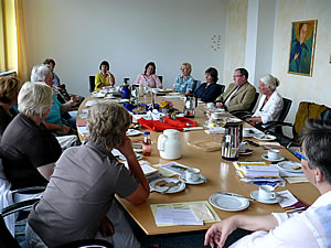 Nachmittags informierten sie sich über die Arbeit des Evangelischen Alten- und Pflegeheimes, Haus Phöbe, in Warburg-Rimbeck und des Hotels Erika-Stratmann in Bad Driburg. Abends waren sie zu Gast in der Frauenhilfegruppe „der letzte Donnerstag“ in Bad Lippspringe.