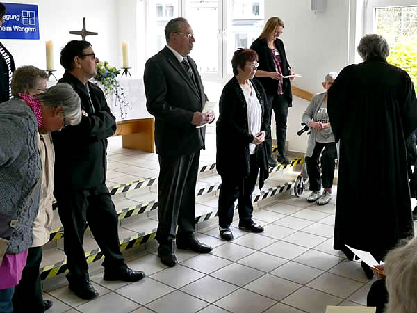 Herzlich begrüßte die leitende Pfarrerin, Angelika Weigt-Blätgen, die zahlreichen Gottesdienstbesucher am 19. April in der gut gefüllten Cafeteria des Frauenheims Wengern. Und einige Personen wurden besonders begrüßt, denn an diesem Tag feierten zahlreiche Bewohnerinnen und Bewohner ihre Jubelkonfirmation.
