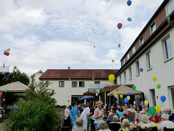 Ballon-Wettbewerb, Adler und Falken, die Scherfeder „Oldie-Musikanten“ - das Sommerfest im Haus Phöbe lockte in Juli mit vielen Attraktionen zahlreiche Angehörige, Freunde des Hauses sowie Bewohnerinnen und Bewohner ins Alten- und Pflegeheim in Rimbeck.
