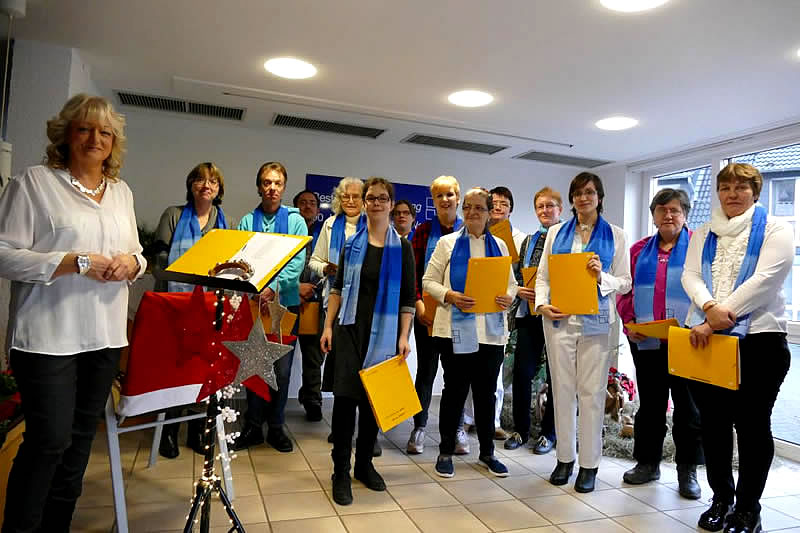 Der Chor „Sing und Swing“ stimmte die Gäste auf den Advent ein. Unter ihrer Leiterin Sandra Förster sangen Bewohnerinnen und Bewohner alte und neue Advents- und Weihnachtslieder in Deutsch und Englisch. Zum Abschluss des Auftrittes sangen dann Alle bei „Alle Jahre wieder“ mit.