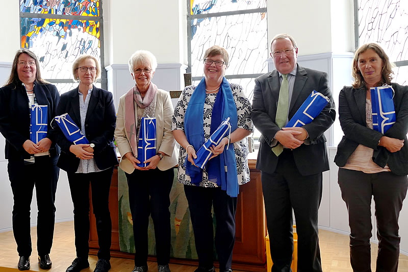 Mit überzeugender Mehrheit wurden (v.l.n.r.) Christiana Grimm (Werl), Daniela Stiftel-Völker (Meschede), Erika Denker (Siegen), Helga Berghoff (Bochum), Vizepräses Albert Henz und Pfarrerin Petra Buschmann-Simons (Bergkamen) in den Vorstand der Evangelischen Frauenhilfe in Westfalen e.V. gewählt.