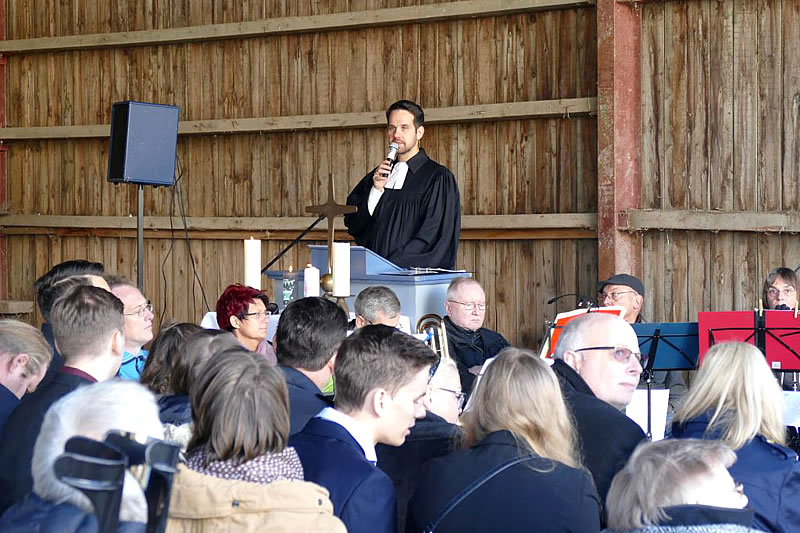 Nach dem Gottesdienst, den der angehende neue Gemeindepfarrer Michael Waschhof hielt, stärkten sich die Gäste bei Erbsensuppe oder Kaffee und Kuchen. Sie plauderten in gemütlicher Atmosphäre im früheren Kuhstall.