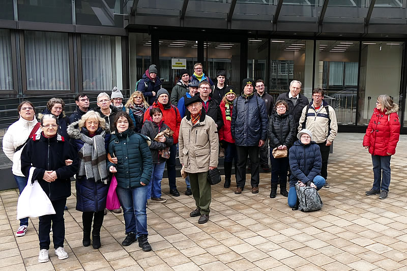 Organisiert wurde der Besuch am 12.02.2019 durch das Kompetenzzentrum Selbstbestimmtes Leben (KSL) Regierungsbezirk Arnsberg. Zunächst fanden sich nach entspannter Busanreise aus Wengern alle beteiligten Gruppen im Foyer des Landtags zusammen. Dazu gehörte - neben dem KSL auch der KÜNSTLERstammtisch ChiccoART aus Dortmund, EUTB – Teilhabeberatung selbstbestimmt leben Dortmund, der Caritas Arnsberg Sundern und zwei selbstständig mitgereisten Frauen - auch eine große Gruppe des FRAUENHEIM WENGERN. Aus dem Frauenheim reisten mehrere Gremien mit: Der Beirat der Bewohner*innen, der Werkstattrat, die Frauenbeauftragung von Werkstatt und Wohnheim und der Arbeitskreis Politische Bildung.