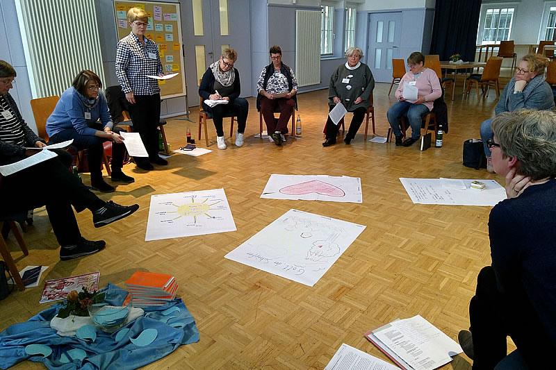 Fachkundig und kurzweilig, in Impulsreferaten, Erfahrungsaustausch und zahlreichen Übungen sowie liturgischen Zwischentönen erarbeiteten sich die Frauen Grundkenntnisse nicht nur zu diesen Fragestellungen. Viele der Teilnehmerinnen sind bereits ehrenamtlich in Trauercafés, in der Arbeit mit Eltern oder in der Gemeinde engagiert. Nun überlegen sie, ein Vertiefungsmodul zu besuchen.