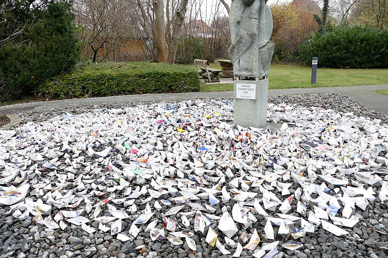 Zum Gedenken an die im Mittelmeer ertrunkenen Flüchtlinge und als kleines Zeichen der Solidarität hat auch Präses Annette Kurschus ein Papierschiff gebastelt. Ihr Appell: „Leicht ist es durchgeweicht, in Sekunden vollgelaufen und kurz drauf nur noch ein Klumpen nasses Papier. Am heutigen Tag der Menschenrechte steht ein solches Papierschiffchen vielleicht auch in ihrer Stadt, auf dem Markplatz oder an einer anderen gut sichtbaren Stelle. Gemeinsam mit über 1.300 anderen mahnt es Nachdenken und Umdenken an. 1.319 Geflüchtete sind im vergangenen Jahr im Mittelmeer ertrunken. Mit jedem von ihnen sind in unserer nächsten Nähe auch Hoffnung und Würde zu Tode gekommen und die Sehnsucht nach Gerechtigkeit, Freiheit und Mitmenschlichkeit vor den Türen Europa untergegangen. Dies darf nicht so bleiben. Seenotrettung ist Menschenpflicht.“ Mitarbeiter*innen des Verbandes haben mehr als 1.600 Papierboote gefaltet und am Mahnmal „Gewalt überwinden“ auf dem Feldmühlenweg in Soest hingelegt.