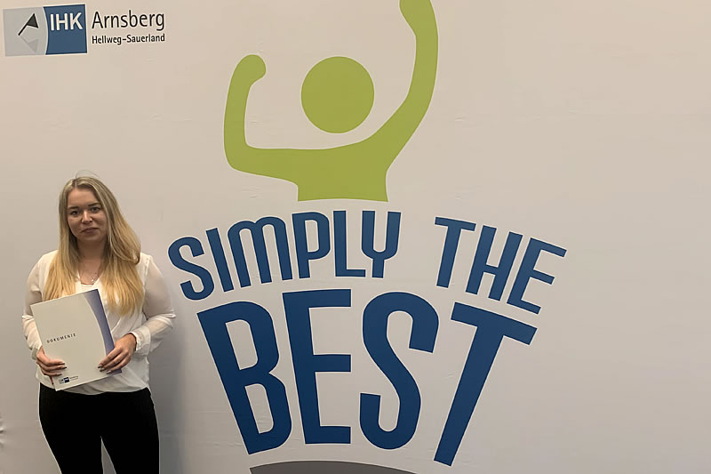 „Sie haben durch Zielstrebigkeit, Ehrgeiz und Fleiß beste Ergebnisse erreicht. Es war unter den Coronabedingungen bestimmt nicht einfach, die Ausbildung zu bewältigen“, stellte Susanne Schulte-Döinghaus die besonderen Leistungen heraus. In seiner Laudatio bedankte sich Ekkehart Schieffer auch bei denjenigen, die die Auszubildenden unterstützt haben: Dazu gehören Familien und Freunde, Ausbilder*innen in den Betrieben sowie die Berufsschullehrer*innen. Zu den „Super-Azubis“ gehört auch Jasmin Brüggemann, die ihre Ausbildung zur Kauffrau für Büromanagement in der Evangelischen Frauenhilfe in Westfalen absolvierte.