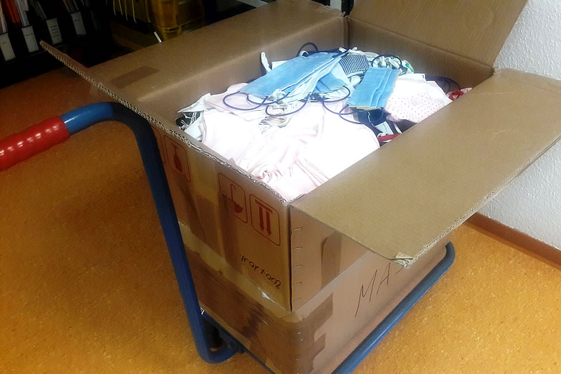 „Wir müssen helfen!“ – „Wir müssen jetzt medizinische Masken tragen, da müssen unsere Stoffmasken nicht im Schrank liegen bleiben, sondern anderen Menschen Schutz bieten!“ Mitarbeitende in den Arbeitsbereichen der Evangelischen Frauenhilfe in Westfalen waren schnell davon zu überzeugen, ihren „Überschuss“ an gewaschenen Stoffmasken für das Zeltlager auf Lesbos zu spenden. Innerhalb von zwei Wochen kamen 16 Kilogramm Masken zusammen, die nun auf den Weg nach Griechenland geschickt wurden.