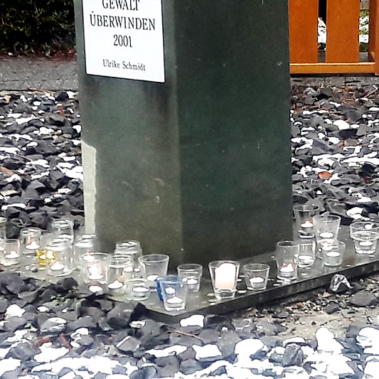35 Mitarbeitende der Evangelischen Frauenhilfe in Westfalen fanden sich am Feldmühlenweg in Soest zum zehnten Mal zum Friedensgebet zusammen. Für Frieden für die Ukraine, für Frieden für alle Menschen auf der Welt beteten sie und zündeten Hoffnungslichter am Mahnmal „Gewalt überwinden“ auf dem Gelände.