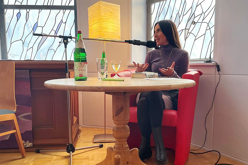 Da saß sie - in einem gemütlichen Sessel, mit Beistelltisch und einer Leselampe und las Abschnitte aus ihrem Debütroman „Winternähe“. Mirna Funk schaffte zwischen sich und den mehr als 80 Zuhörer*innen in der Tagungsstätte Soest eine fast private Atmosphäre Ende März. Das musikalische und kulinarische Rahmenprogramm steigerte den Genuss dieser Lesung.