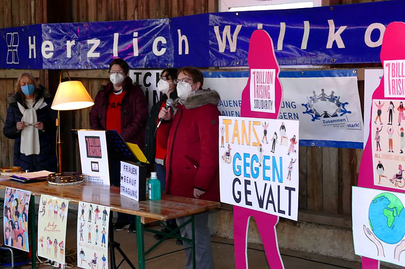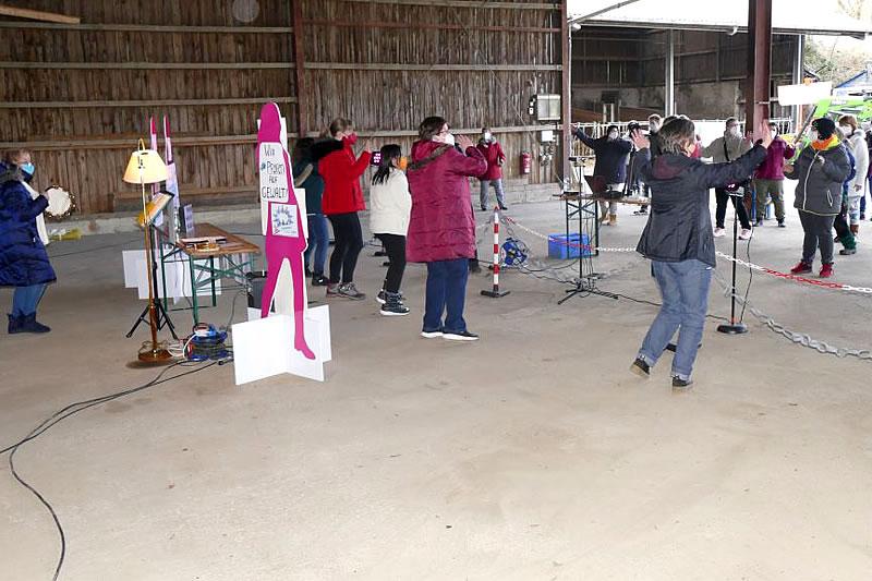 In der Remise - auf dem landwirtschaftlichen Betrieb der Werkstatt WfbM am Böllberg in Wetter-Wengern – fand der Protesttanz statt. Die Frauenbeauftragten der WfbM – Astrid Tremblau und Svenja Müller – assistiert von Sandra Förster bereiteten die Veranstaltung vor und meinten zum Schluss: „Die Arbeit hat sich gelohnt. Alle Frauen haben begeistert mitgemacht. Sogar die Sonne schien, als wir für Frauen und die Erde demonstriert haben.“