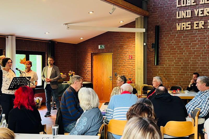 Auf ein viertel Jahrhundert des Wohnheims Haus WegWende blickten fast 60 Gäste Mitte September 2023 gemeinsam zurück. Haus WegWende bietet seit dem Wohnraum, Assistenz in allen Lebensbereichen, Versorgung und tagesstrukturierende Maßnahmen für 19 Menschen mit einer psychischen Behinderung in Werdohl an. Angehörige von Klient*innen, Nachbar*innen, Mitarbeitende, Wegbegleiter*innen einerseits, Vertreter*innen von Diakonie, Verbänden, Ämtern und Diensten sowie der Verwaltung der Trägerin andererseits kamen aus diesem Anlass in das Gemeindehaus der Evangelischen Kirchengemeinde in Werdohl zusammen.
