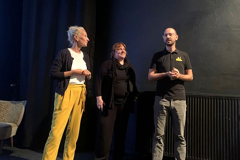 Jana Hansjürgen vom Landesprojekt blick*, Christina Vetter von der Evangelischen Frauenhilfe in Westfalen und der Schlachthof-Kino-Leiter Richard Nüsken begrüßten die Anwesenden zur Veranstaltung „Kurzfilme und Picknick“ Ende September in Soest.
