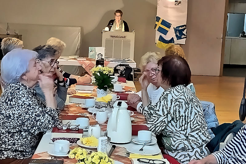 Was hat die Kinderbuchautorin Astrid Lindgren mit Frieden zu tun? Die Referentin konnte über die Biographie der Schriftstellerin, Mutter, Meinungsbildnerin und Demokratin kurzweilig und gewürzt mit Zitaten aus Lindgrens Briefen und Werken das ein oder andere aufdecken. „Dass sie, als sie in Rente ging, erst richtig loslegte mit einem 20 Jahre dauernden Friedensengagement, hat mich am meisten erstaunt“, wunderte sich eine Teilnehmerin. „Ja, und dass sie kein Blatt vor den Mund nahm“, eine andere.