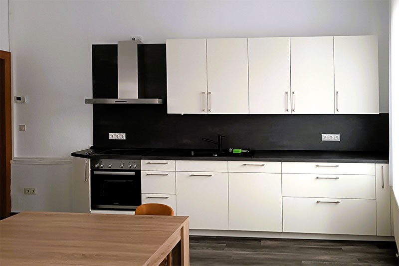„In den Räumlichkeiten der Bahnhofstr. 26 gibt es neben einer großen Gemeinschaftsküche auch ein Büro, in dem werktags tagsüber Ansprechpersonen für unsere Bewohnerinnen und Bewohner erreichbar sind“, erläutert Jörn Hackbusch und ergänzt: „Eine nächtliche Betreuung wird es nur telefonisch geben.“ Das Angebot richtet sich somit an insgesamt neun Personen, die mit einer aufsuchenden Hilfe in ihrer eigenen Häuslichkeit – dem ambulant betreuten Wohnen – nicht ausreichend unterstützt sind, aber gleichzeitig auch keiner stationären Unterstützung – wie die der besonderen Wohnform – bedürfen.