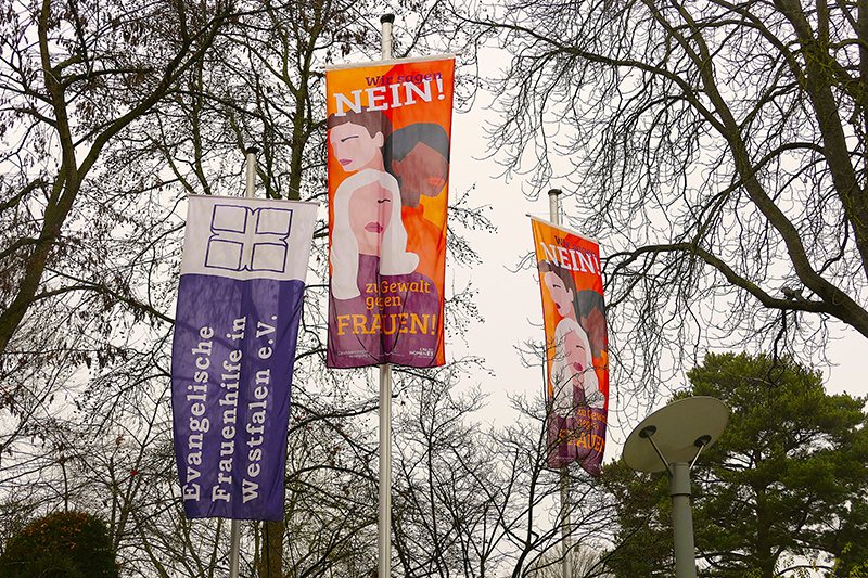 Die Evangelische Frauenhilfe in Westfalen zeigt Flagge in Soest und sagt 16 Tage sichtbar: NEIN zu Gewalt gegen Frauen!