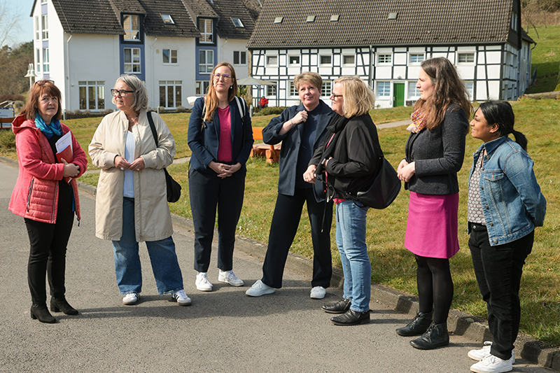 Wie können Schutz- und Unterstützungsangebote für Frauen mit Behinderung in der Eingliederungshilfe weiterentwickelt und verbessert werden? Diese Frage stand im März 2025 im Fokus des Besuchs von SPD-Landtagsabgeordneten im FRAUENHEIM WENGERN. Anja Butschkau (Sprecherin für Frauen und Gleichstellung), Silvia Gosewinkel (Beauftragte für Inklusion) und Kirsten Stich (Wahlkreis-Abgeordnete) sprachen mit Nadine Somer (Gesamtleitung FRAUENHEIM WENGERN), Ingrid Backhaus (Bereichsleitung Wohnen Am Böllberg) und Patricia Weigang (Sozialer Dienst der Werkstatt) sowie mit Anne Heckel als Leiterin der Anti-Gewalt-Arbeit der Evangelischen Frauenhilfe in Westfalen e.V.