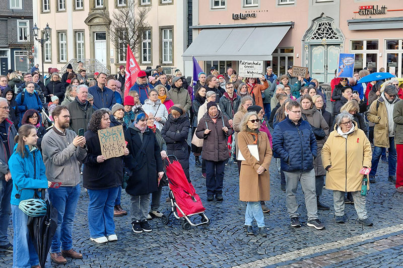 Auf dem Lippstädter Rathausplatz versammelten sich am Montagnachmittag rund 160 Menschen, um ein deutliches Zeichen gegen digitale und analoge Gewalt an Frauen zu setzen. Unter dem Motto „Auch das Netz muss sicher sein“ schloss sich Lippstadt damit den bundesweiten Protesten an, die durch die Vorwürfe der Moderatorin Collien Fernandes gegen ihren Ex‑Partner Christian Ulmen ausgelöst wurden. Trotz schlechter Wetterbedingungen übertraf die Beteiligung die ursprünglich angemeldeten 50 Personen deutlich.